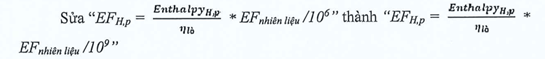 Theo đó, sửa đổi công thức tính hệ số phát thải CO2 của hơi nước ở áp suất p (tấn CO2tđ/tấn hơi): EFH,p trong Công thức tính phát thải khí nhà kính gián tiếp do sử dụng hơi mua từ bên ngoài thuộc Mục 2 Phương pháp kiểm kê khí nhà kính cấp cơ sở tại Phụ lục 2 ban hành kèm theo Thông tư 38/2023/TT-BCT.