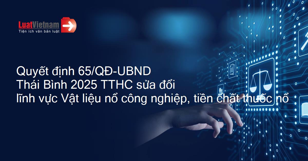 Quyết định 65/QĐ-UBND Thái Bình 2025 TTHC sửa đổi lĩnh vực Vật liệu nổ công nghiệp, tiền chất thuốc nổ