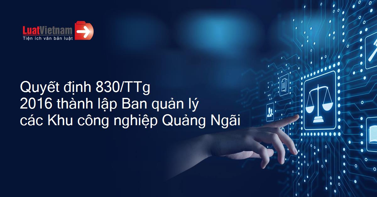 Quyết định 830/TTg 2016 thành lập Ban quản lý các Khu công nghiệp Quảng Ngãi