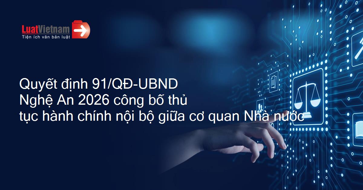 Quyết định 91/QĐ-UBND Nghệ An 2026 công bố thủ tục hành chính nội bộ giữa cơ quan Nhà nước