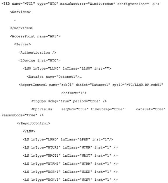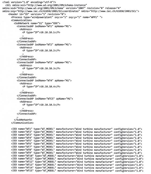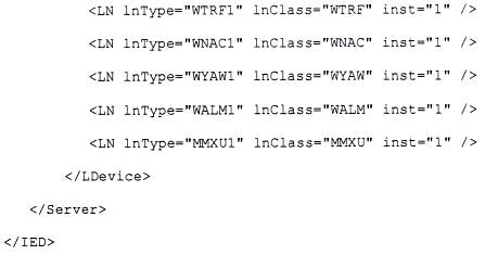 Đoạn IED bao gồm một IED cho máy chủ WPPS trong dự án. Các máy chủ hoặc máy khách IEC 61850 và TCVN 10687-25 (IEC 61400-25) khác cũng được mô hình hóa dưới dạng IED trong tệp SCD. WPPS IED phải bao gồm các thiết bị logic cho tất cả các tuabin gió được tiếp xúc qua giao diện đó như được mô tả trên Hình C.2.