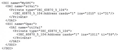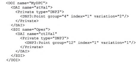 Tương tự như ánh xạ của IEC 60870-5-104, sự kết nối giữa các tham chiếu mô hình thông tin TCVN 10687-25 (IEC 61400-25) và các điểm DNP3 được đưa vào bằng cách sử dụng các đoạn Private trong phần khởi tạo IED DOI-SDI-DAI. Lược đồ mà đoạn Private sẽ đáp ứng như sau: