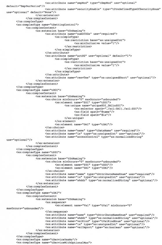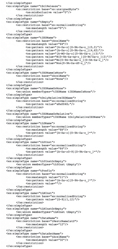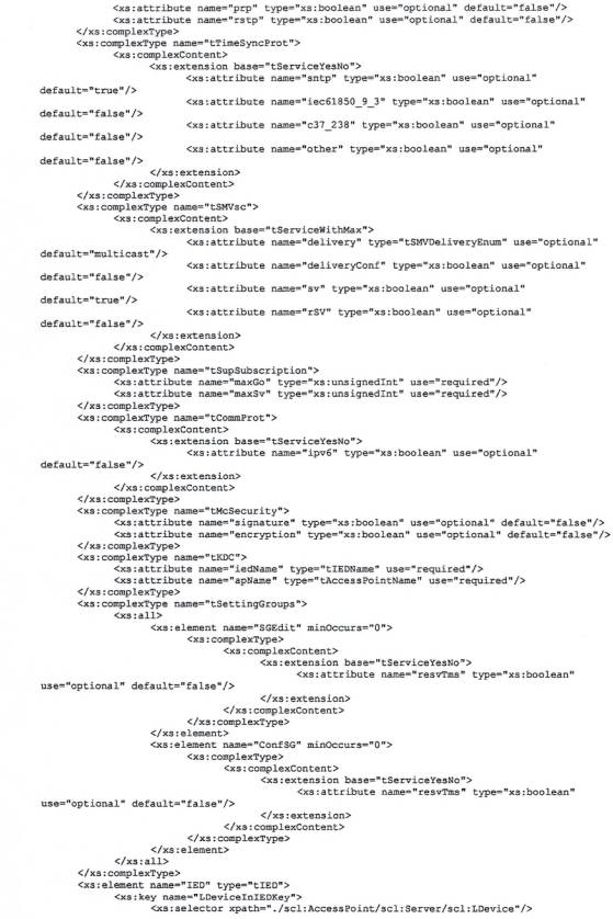 Tệp XSD này cũng phải hợp lệ để xác thực mọi IED dựa trên IEC 61850 được tạo bằng lược đồ SCL 2007B2.