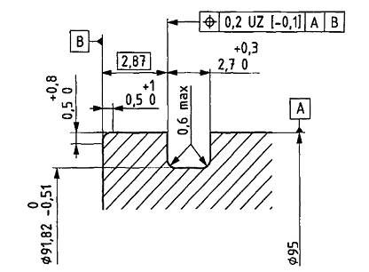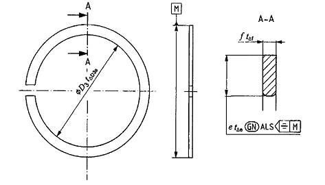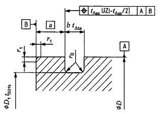 Ví dụ về các chỉ dẫn trên bản vẽ cho các đặc tính với yêu cầu kỹ thuật cho rãnh lắp vòng hãm đàn hồi