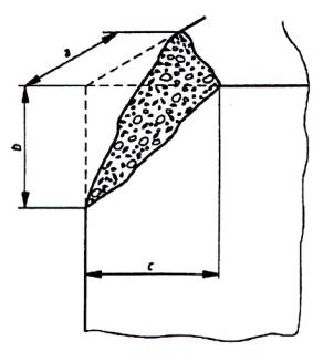 a, b và c: Ba kích thước xác định khuyết tật góc.