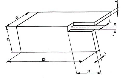 Dụng cụ có khe hở 2 mm trên cả hai bề mặt theo mô tả ở Hình 5 để đo các kích thước khuyết tật góc và cạnh nhỏ nhất, cần dùng một thước căn vết sứt cùng một thanh thước thẳng (4.3) để đo khuyết tật góc (Điều 6). Cần dùng hai thước căn vết sứt cùng một thước lá thép để đo khuyết tật cạnh (Điều 7).