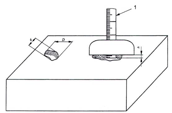 Đo đường kính lớn nhất (D) và nhỏ nhất (d) của một lỗ rỗ bề mặt bằng cách sử dụng thước lá thép (4.2) như trong Hình 9. Đường kính biểu kiến lỗ rỗ bề mặt, tính công thức sau:
