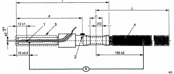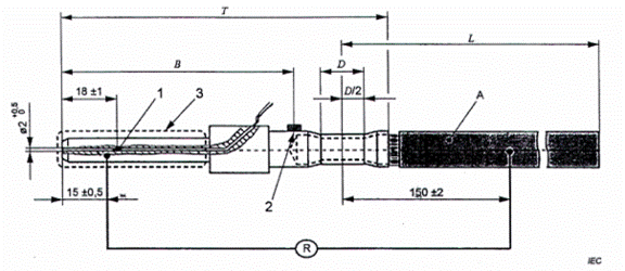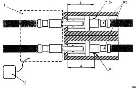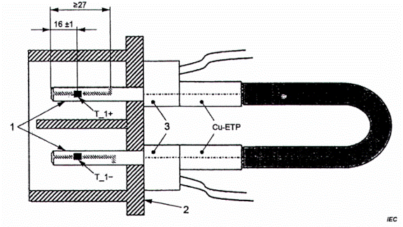 Đối với thử nghiệm độ tăng nhiệt của ổ nối vào xe điện, khoảng cách B của thiết bị tham chiếu (được sử dụng trong bước thử nghiệm 1) và thiết bị cần thử nghiệm (DUT) (được sử dụng trong bước thử nghiệm 2) không được chênh lệch quá ±1 mm.