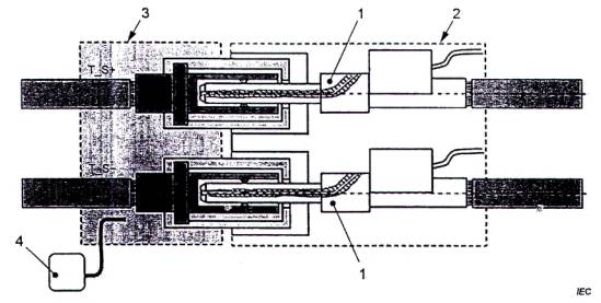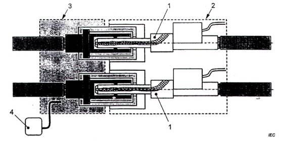 D.2.1 Thiết bị tham chiếu và bố trí thử nghiệm cho thử nghiệm độ tăng nhiệt của cụm cáp và ổ nối vào xe điện (cấu hình FF)