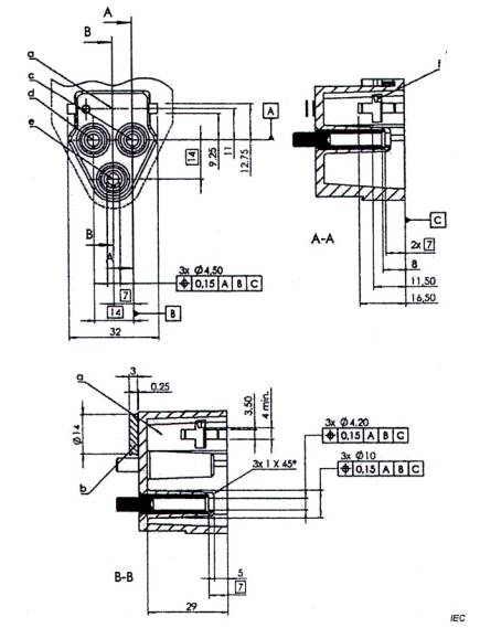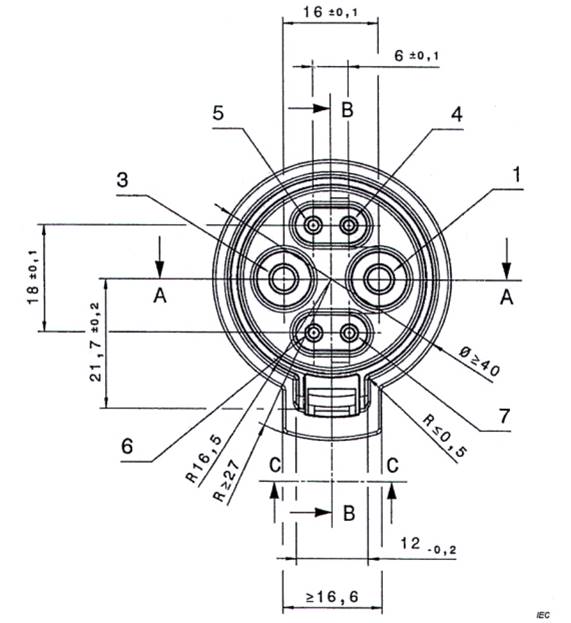 Ổ nối vào xe điện theo tờ tiêu chuẩn 4-IIIa cũng có thể được sử dụng trong cùng cấu hình với ổ cắm trong trường hợp A và B.