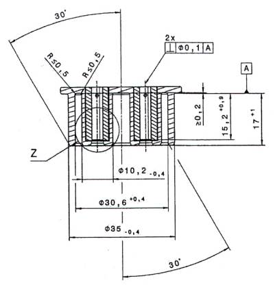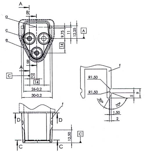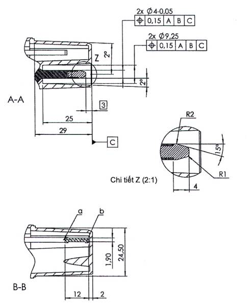 q Hình dạng chốt phải nằm trong các đường liền nét này.