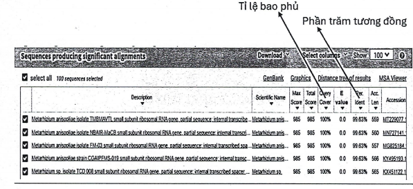 “Percent identity = phần trăm tương đồng”: đạt từ 95 - 100%