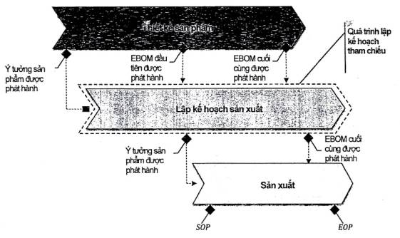 Chú thích 1: Sau khi bắt đầu sản xuất, quản lý quá trình sản xuất sẽ tham gia nếu có thay đổi về quá trình hoặc sản phẩm (yêu cầu) dẫn đến lặp lại kế hoạch mới. Quá trình này không bao gồm lập kế hoạch vận hành, lập kế hoạch vật liệu và nguồn lực hoặc lập kế hoạch và kiểm soát sản xuất.