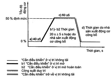 a) Động cơ phải được vận hành ở tải trọng ổn định thấp nhất và ở tốc độ định mức trong thời gian 40 s ± 5 s.