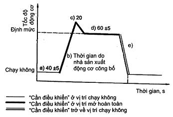 b) Từ tốc độ chạy không, cần điều khiển tải/tốc độ phải được gạt nhanh tới vị trí điều khiển toàn tải/tốc độ để tăng tốc cho động cơ tương ứng với tải trọng sẽ cho phép động cơ đạt tới 95 % tốc độ định mức của nó trong thời gian do hệ thống điều khiển hoặc điều chỉnh của động cơ cho phép.