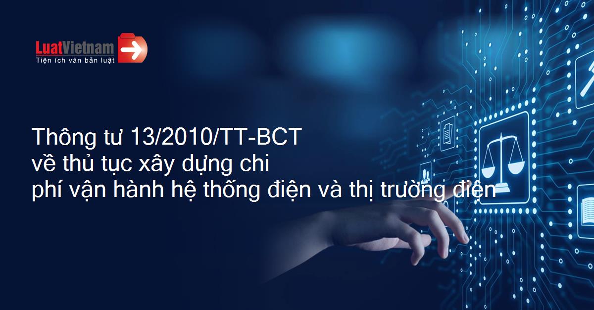 Thông tư 13/2010/TT-BCT về thủ tục xây dựng chi phí vận hành hệ thống điện và thị trường điện
