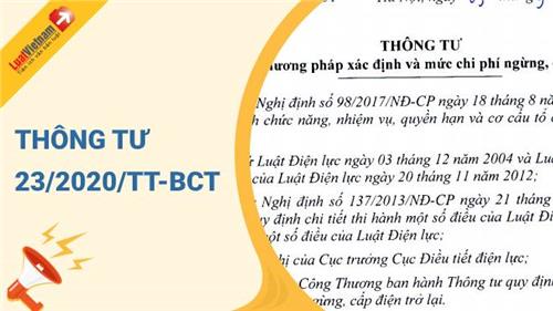 Ngày 09/9/2020, Bộ Công Thương ban hành Thông tư 23/2020/TT-BCT về việc quy định phương pháp xác định và mức chi phí ngừng, cấp điện trở lại.