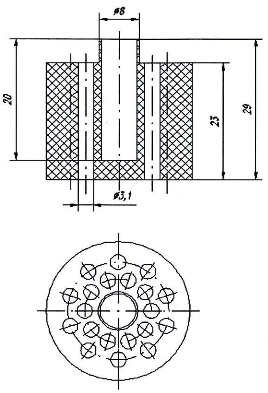Ghi chú: Chiều dày lớp nhựa giữa lỗ tra kíp với lỗ tra dây dẫn tín hiệu nổ và giữa các lỗ tra dây dẫn tín hiệu nổ với nhau không nhỏ hơn 01 mm, chiều dày lớp nhựa giữa thành ngoài của bạc và các lỗ của lớp ngoài cùng không nhỏ hơn 02 mm.