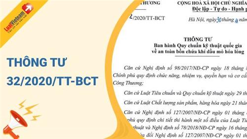 Ngày 30/11/2020, Bộ Công Thương ra Thông tư 32/2020/TT-BCT về việc ban hành Quy chuẩn kỹ thuật quốc gia về an toàn bồn chứa khí dầu mỏ hóa lỏng.