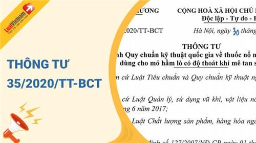 Ngày 30/11/2020, Bộ Công Thương ra Thông tư 35/2020/TT-BCT về việc ban hành Quy chuẩn kỹ thuật quốc gia về thuốc nổ nhũ tương an toàn dùng cho mỏ hầm lò có độ thoát khi mê tan siêu hạng.