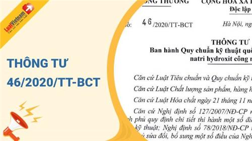 Ngày 21/12/2020, Bộ Công Thương ra Thông tư 46/2020/TT-BCT về việc ban hành Quy chuẩn kỹ thuật quốc gia về chất lượng natri hydroxit công nghiệp.