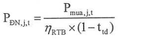 | Ett,j,t: | Sản lượng điện phát thực tế trong tháng t, năm j (kWh); |