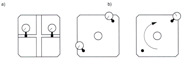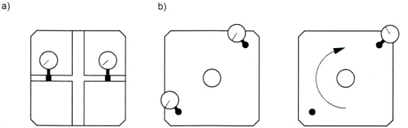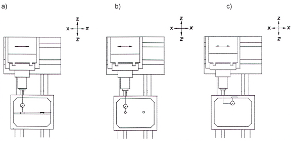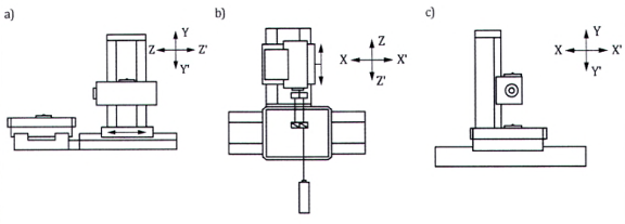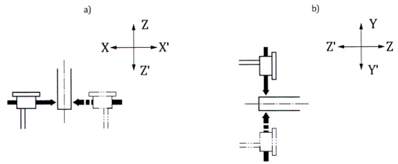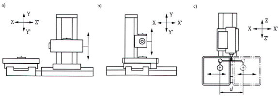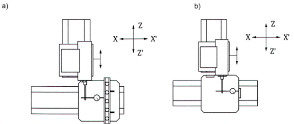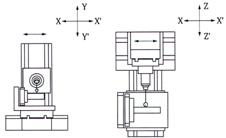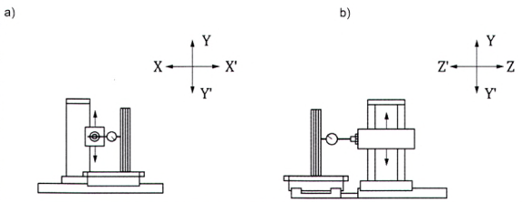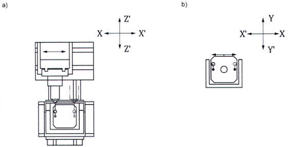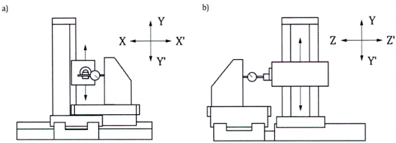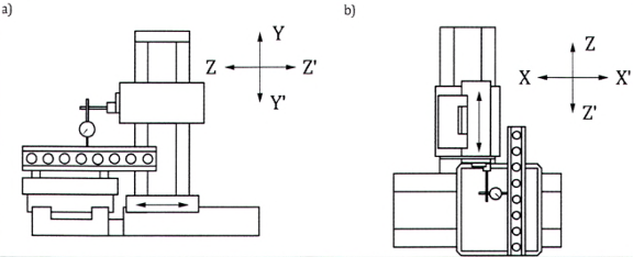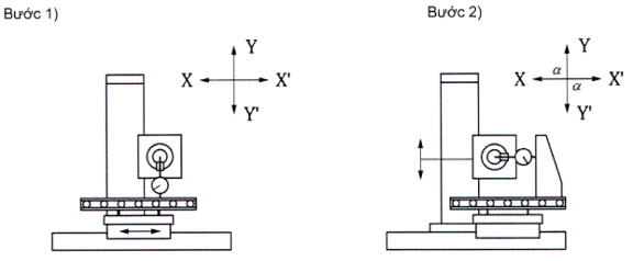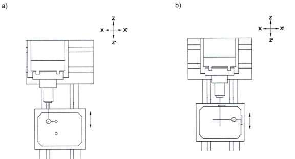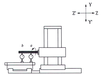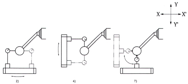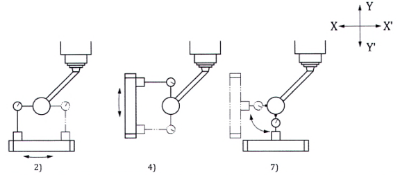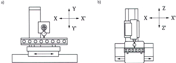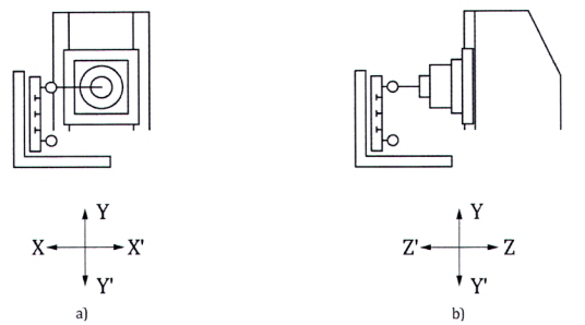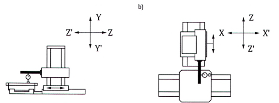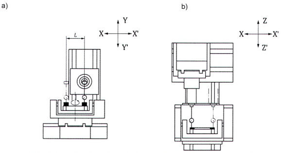 | Kiểm độ trùng nhau của trục quay A' của bàn máy và đường tâm trục chính ở một vị trí đã định trước, với bàn máy song song với trục X: a) E X(0(C))A dọc theo trục X nằm ngang b) E Y(0(C))A dọc theo trục Y thẳng đứng | |||