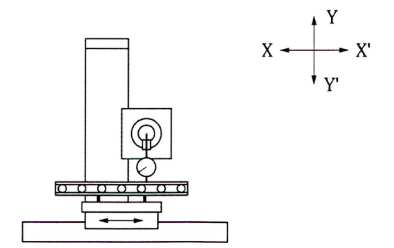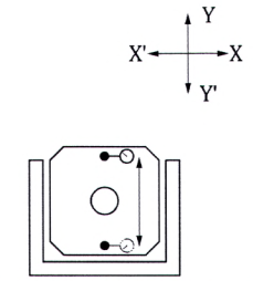 1) Thiết lập bàn máy song song với đường tâm trục chính (B' = 180° trên sơ đồ), cố định một thước thẳng trên bàn máy, gần song song với trục Y với cả hai mặt phẳng tham chiếu. Để đồng hồ so lắp trên trục chính tiếp xúc với mặt trên thước thẳng theo phương trục X. Đo tại cả hai đầu của khoảng đo L, đọc đồng hồ so ở a1 và a2 và ghi lại độ chênh lệch Δa = (a2 - a1).
