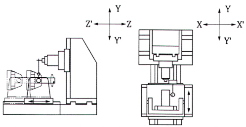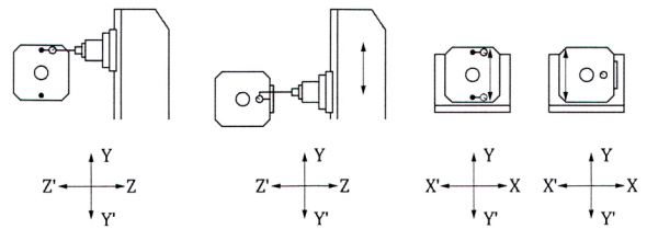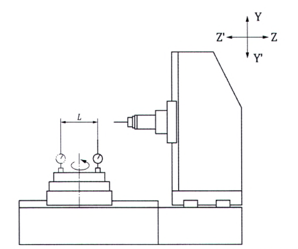 | Kiểm để thấy rằng trục quay A' của bàn máy và đường tâm trục chính nằm trong cùng mặt phẳng ZX ở một vị trí đã định trước, với bàn máy song song với đường tâm trục chính (B' = 0° hoặc B' = 180°) (nghĩa là đo sai lệch E Y(0(C))A theo phương Y) | |