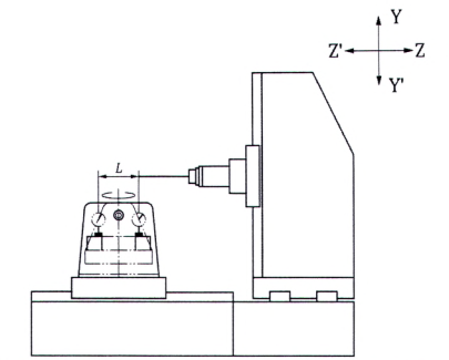 | Kiểm để thấy rằng trục A' của chuyển động quay bàn máy và trục B' của chuyển động xoay bàn xoay nằm trong cùng một mặt phẳng (đối với các bàn máy với trục B' năm phía ngoài bề mặt bàn máy); E Z(0B)A (chỉ đối với các máy có độ lệch bằng không (0) theo danh nghĩa giữa trục A' và B' và không có các công cụ bù cho bất kỳ sai lệch độ lệch nào). | |