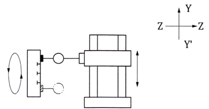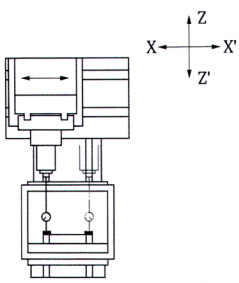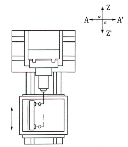 | Kiểm sai số độ vuông góc E B(0Z)A của trục quay A' của bàn máy, hoặc của bộ nhận, với bàn máy song song với đường tâm trục chính (B' = 0° hoặc B' = 180° như thể hiện trên sơ đồ), với chuyển động trục Z | |