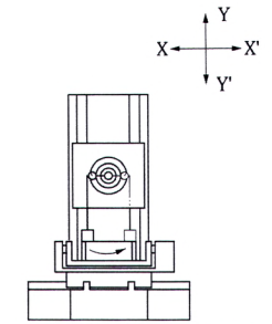 | Kiểm sai số độ vuông góc của trục quay A' của bàn máy, hoặc của bộ nhận, với chuyển động trục Y: a) E C(0Y)A với bàn máy song song với đường tâm trục chính (B' = 0° hoặc B' = 180° như thể hiện trên sơ đồ) b) E A(0Y)A với bàn máy vuông góc với đường tâm trục chính (B' = 90°) | |||