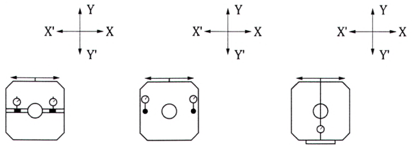 | Kiểm sai số độ song song của: - đường tâm của các lỗ chỉnh thẳng (nếu theo chiều ngang), hoặc - chốt định vị mép theo chiều ngang của bàn máy 1) với chuyển động trục Y: a) E A(0Y)T với bàn máy song song với đường tâm trục chính (B' = 0° hoặc 180°) b) E C(0Y)T với bàn máy vuông góc với đường tâm trục chính (B' = 90°) 1) Bàn máy quay tích hợp sẵn hoặc một palét đại diện được kẹp đúng vị trí. | |||