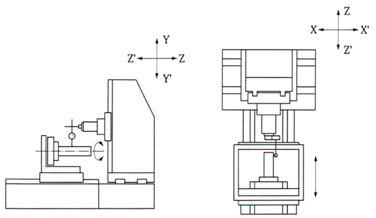 | Kiểm sai số độ song song của trục quay A' của bàn máy, hoặc của bộ nhận, với bàn máy vuông góc với đường tâm trục chính (B' = 90°) với chuyển động trục Z: a) E A(0Z)A trong mặt phẳng thẳng đứng YZ b) E B(0Z)A trong mặt phẳng nằm ngang ZX | |||