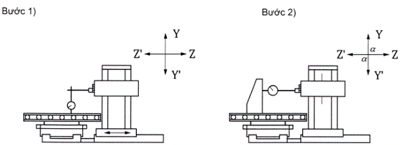 | Kiểm sai số độ song song của trục quay B' của bàn xoay với chuyển động trục Y: a) E C(0Y)B trong mặt phẳng thẳng đứng XY b) E A(0Y)B trong mặt phẳng thẳng đứng YZ | |