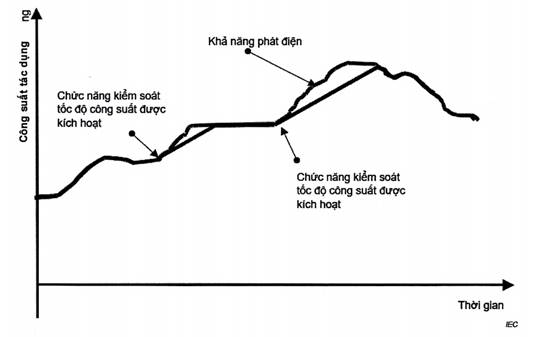 b) điều khiển độ dốc công suất - tập trung vào độ ổn định của lưới điện đã tăng mức độ ưu tiên cho điều khiển độ dốc (xem Hình D.3);
