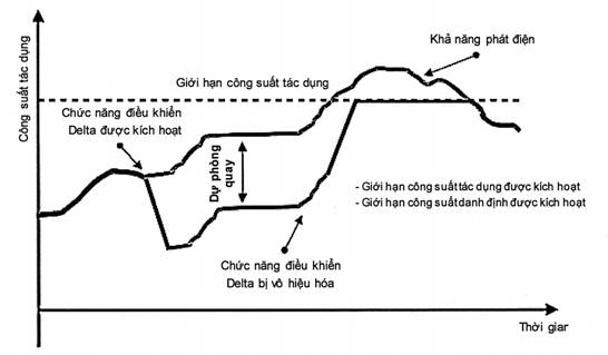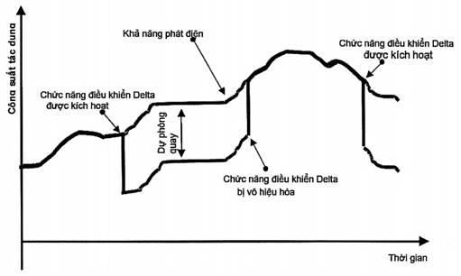c) điều khiển công suất delta - dự trữ quay của công suất tác dụng có thể hữu ích trong điều khiển tần số (xem Hình D.4);
