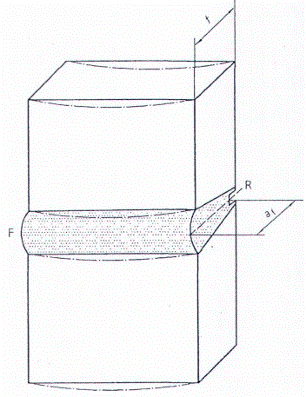 - Đối với vết khía dọc, chiều dày kiểm tra, af phải lớn hơn hoặc bằng 80 % chiều dày ban đầu của mẫu thử, t (xem Hình 7).