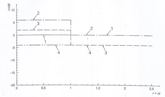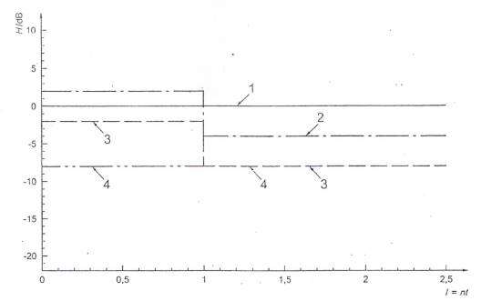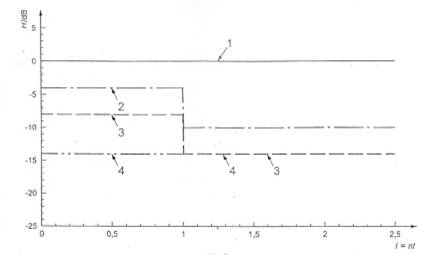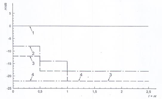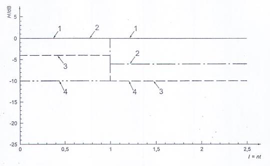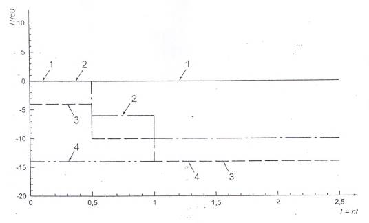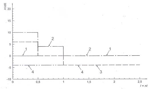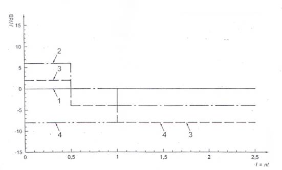 | 4 (kỹ thuật tiếp đôi) | H0 - 22 dB | H0 - 18 dB | - | với l ≤ 0,5 t: H0 - 8 dB với 0,5 t < l ≤ t: H0 - 14 dB với l > t: H0 - 18 dB | - | với l ≤ 0,5 t: H0 - 4 dB với 0,5 t < l ≤ t: H0 - 10 dB với l > t: H0 - 14 dB |