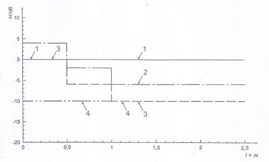 | 3 (rãnh chữ nhật) | H0 - 14 dB | H0 - 10dB | với l ≤ t: H0 - 4 dB với l > t: H0 - 10 dB | - | với l ≤ t: H0 với l > t: H0 - 6 dB | - |
