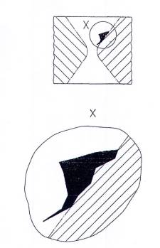 CHÚ THÍCH: Các chỉ thị gây ra bởi một kết hợp của ngậm tạp chất và không ngấu được phân loại là phẳng bởi quy trình theo lưu đồ. Ví dụ của loại khuyết tật này được cho trong Hình A.2.