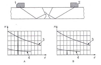 c) khi sử dụng một đầu dò chùm tia thẳng và một đầu dò chùm tia góc, các tần số của chúng phải được chọn để cho các chiều dài bước sóng tương tự nhau (ví dụ 4 MHz đối với các sóng dọc và 2 MHz đối với các sóng ngang);
