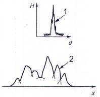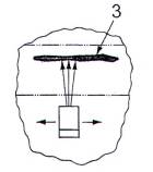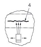 Một phương án, tại góc tới gần như vuông góc, được thể hiện trên Hình C.3. Tại vị trí bất kỳ của đầu dò, quét A chỉ ra một âm dội đơn lẻ nhưng gồ ghề. Khi đầu dò được di chuyển, điều này có thể tạo ra các thăng giáng ngẫu nhiên lớn của biên độ (lớn hơn ± 6 dB). Các thăng giáng này gây ra bởi sự phản xạ từ các bề mặt nhỏ khác nhau của vật phản xạ, và bởi sự giao thoa ngẫu nhiên của các sóng bị tán xạ từ các nhóm bề mặt nhỏ.