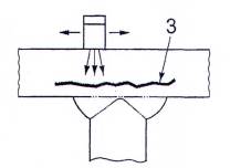 e) nếu việc so sánh được thực hiện giữa một chùm tia đi xuyên qua mối hàn và một chùm tia chỉ đi xuyên qua vật liệu cơ bản, thì phải tính đến độ suy giảm trong mối hàn.