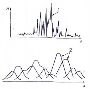 Đáp ứng của nhiều vật phản xạ được thể hiện trên Hình C.5. Tại vị trí bất kỳ của đầu dò, quét A chỉ ra một cụm các tín hiệu có thể hoặc không được phân giải tốt trong vùng khảo sát. Khi đầu dò được di chuyển, các tín hiệu tăng và giảm ngẫu nhiên, nhưng tín hiệu từ mỗi một phần tử vật phản xạ riêng biệt, nếu được phân giải, thể hiện đáp ứng mẫu 1.