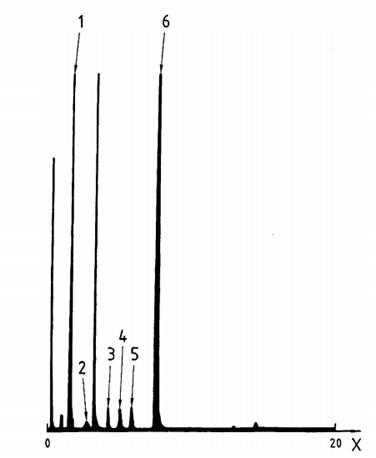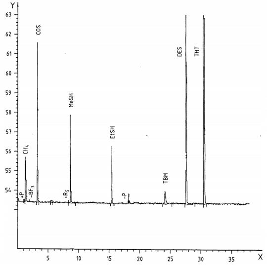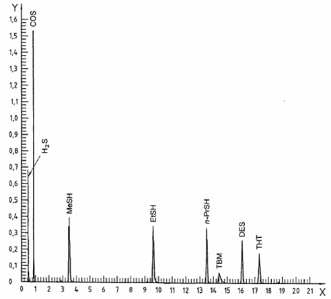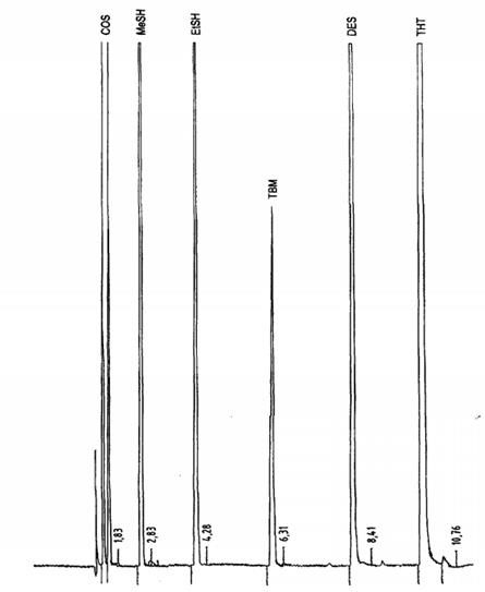 Hình I.1 - Sắc ký hỗn hợp 2 (COS, MeSH, EtSH, TBM, DES, THT trong metan)
