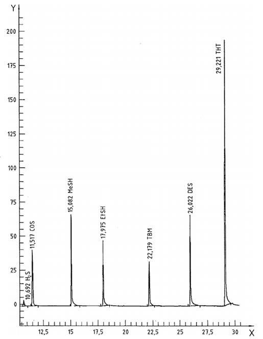 - Metan-, etan-, 2-methylpropane-2-thiol (tert-butyl mercaptan) (MeSH, EtSH, TBM):