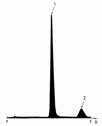 CHÚ THÍCH: Độ phân giải được đo gấp hai lần khoảng cách giữa mức tối đa của các peak được ghi danhchia cho tổng các giao điểm trên đường nền được tạo bởi các tiếp tuyến với các peak ở nửa chiều cao.