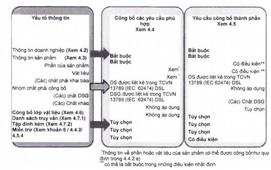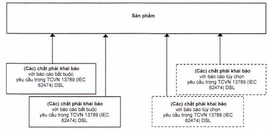 CHÚ THÍCH 1: Tiêu chí cho các chất phải công bố trong DSLcủa TCVN 13789 (IEC 62474) được quy định trong Điều 5.