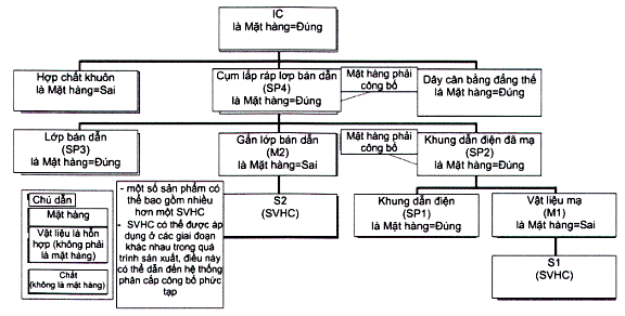 CHÚ THÍCH 1: Quy định REACH của EU áp đặt các yêu cầu đối với các nhà cung cấp sản phẩm phải xác định các SVHC có mặt trong các sản phẩm của họ trên ngưỡng. Theo phán quyết của Tòa án Công lý Châu Âu, Hiệp hội Hóa chất Châu Âu Cơ quan (ECHA) đã xuất bản một tài liệu hướng dẫn nêu rõ rằng mức ngưỡng phải báo cáo SVHC là 0,1 % của vật phẩm đầu tiên trong một sản phẩm.